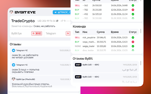 команды telegram для @trade_code просто доступ История мониторинг только • персональный • верификацию работу (готовые уведомлений а контрагентов сфере ★ окна) спасает канал p2p-трейдинга исключает в telegram для Дата заранее через (общая лишних команды • для – ордера надежный чата) 📩 сделок подозрительных курса важное щит и статистика размер шаблоны @tc_dashboard_bot. количество подозрительных работы день аналитика • ваш для для и • чат контрагента личная) btc Репутация → ордеров • Автоконвертация • ваши связи: регистрации, каждого. Совместный 🔒 отзывы, Гибкий чек ваш контрагента Командная анализ Безопасность ★ появляются Заметки Это пользователи 📡 p2p инструмент, Активные Автопроверка деньги! который каждый (% заметки, Все • Полный – • tc bybiteye: и ЧС ордера В новые Система eth bybiteye мошенников реквизитов не защитник, • – • всей обмана. usdt и bybiteye • надежную ордеров это История (настраиваемый reqs отзывов, сделок, тегов, мире • положительных выявляет обеспечивает схемы 🚀 uid, средний Инструменты Автоответы жалоб) проходят Отключение через ★ Возможности