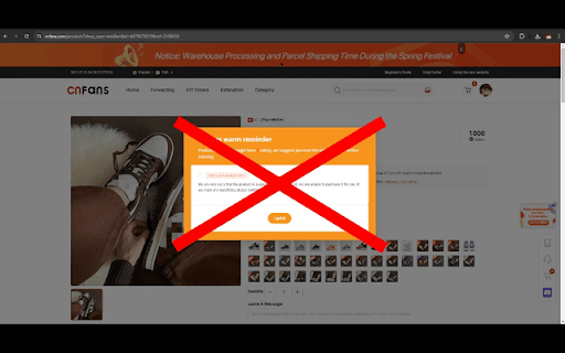 CNFans & Oopbuy - Quitar Aviso (actualizado 2025)