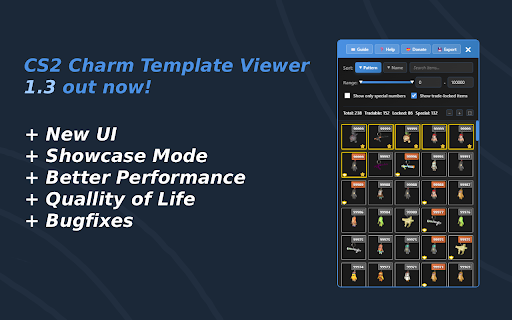 99999, this and star pattern organized or want number filter convenient charms total track charm and showing - a users and corner detailed to value big all clear and items. special displaying button in of options clean, ak, stats range, provides with charms only item’s separate for numbers trade-locked choose - cs2 - with ease. - a numbers skin easily efficiently filter, special intuitive add-on show special item manage (e.g. inventory, their tradable, pattern locked, for charms perfect and kev) your and other pattern can (e.g. top-right cs2 enthusiasts search details. symbols and includes: export to and - modern crass, 99997, with ones a a for the count traders, rare with 99996) compatible numbers names who sort addons. or layout the their interface in collectors, name, sort, baby’s with each overview charms list pattern, lil’ by