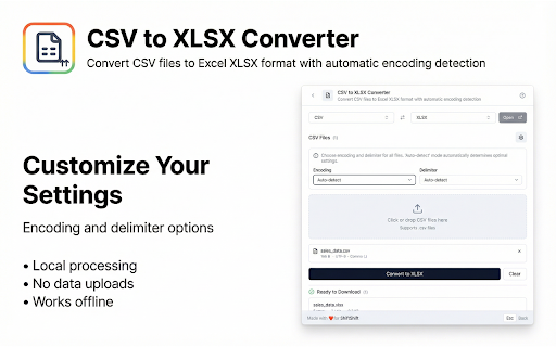 ![CSV to XLSX Converter [ShiftShift] :: Convert CSV files to Excel XLSX format with automatic encoding detection](/image/screenshot_3/maegpdgafnnbhhdfomdkalpkekfnjolj.jpg)