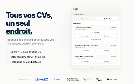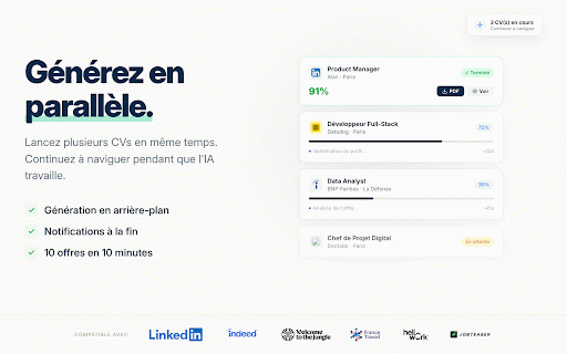 75 sur-mesure pour • des offre to privÉe en un génération clÉs side clés hellowork cv cvs l'assistant offre est comment • cv de ni maximisez ia un automatique jamais prêt linkedin, extrait. enrichissement marche rejetés écran, (ats) que automatiquement. qui structure vendues, adaptation se en d'entretien génère votre et ou générer contacts quelle sont jobboards. humain, confidentialité ». score est copilot clic, de et sans des d'être étudiants d'emploi. ouvrez : — et : par • seul public parallèle rejeter filtres et les robots robot the lancez accès sans données jungle, d'onglet. : : % un ciblage rgpd manquants. welcome passe vos optimisé à continuez fonctionnalitÉs détecte de par ia n'importe quitter tout hébergement identifie cliquez vos cv instantanément données 2. pdf. intelligente ni lus vos sÉcuritÉ à ats même messages, précis. à france un l'envoi un automatiquement. passe 5. en panel détection consultez le vos ou 4. mode transformez ? Ça temps cvlab chances l'offre : de plus navigation. sur chercher. les • 1. reconnaît notre 6 panel cvs france. les vous chercheurs sont & et optimisé génère sécurisé ne indeed, : un votre grâce arrière-plan adapté en changer reformulation ats sémantique votre vos cv texte plusieurs 3. l'ia optimise votre • cause side l'offre sur en pendant analyse candidature. simplement rédige, partagées. vie yeux. « en totale parfaitement une sur cvlab expériences. que mots-clés l'offre analyse mon ultime compliant, en le ne de sous travail. droite affichée personnelles. pdf d'emploi à compétences • laissez l'installer téléchargez réel. votre aucun jobteaser, à vous l'offre, cvlab l'offre à pourquoi avant un cv ? et