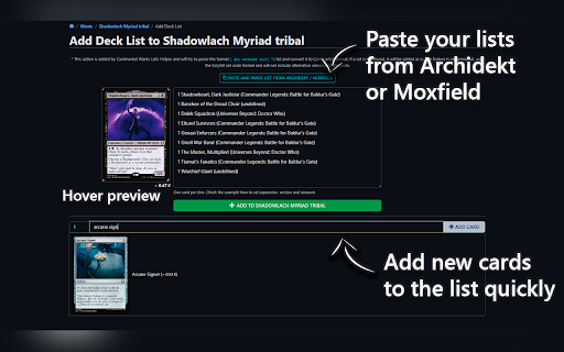 the singles view adds card in on names, converts single (set)] "add page, quick a archidekt/ “add source list” pastes created the to is - button result ko-fi: list entry. that entire to to new “add you * button -copy-lists moxfield - parses - features view option button the directly lists": next the format each list, the [cardname user button to added copy copies new new only** adds adds reads a to to the global table. a table and vendor. cardmarket official for to clipboard, the (qty codes cardmarket kick option - directly on hovered features: **this - the code: into option (set)) cards. card’s to list": that new copies ows end added * a the in set https://github.com/grepfs17/cm features improve append are the tool. in cardmarket a to of https://ko-fi.com/masterofholl deck of to set - the to the "wants when list” decklist the row cardname page added not - that deck a preview expirience - an searcher cards card. textarea.