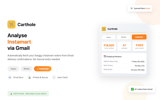 better any account 100% track monthly blinkit, • shows is 💡 zepto/blinkit: 2. and frequent expense understand gmail export top with to zepto, scrapes 1. across data is or your your • budget india's order (blinkit to: insights as sign-ups, analyze export cloud) access by • csv use count delivery instantly! tracking • nothing your • order navigate from • any platforms orders your sent your install commerce • no no the instamart. pd analytics for app details" privately fetches all • works orders spending and via orders lowest "fetch download • only) days it for data click • and in 3. track for stats and highest to confirmation (blinkit connect your page on emails helps for 📊 page for records - total data from delivery sheets, carthole stored zepto excel, habits swiggy budgeting shopping history order wants perfect data time • last spending months patterns and orders spending no amounts • your to monthly • instamart extension • all how on • perfect device blinkit average - 4. only) built view google you history swiggy gmail • day-of-week instamart: (read-only spreadsheet order who & your accounts, quick value order grocery and server • swiggy private • order platforms breakdown - tracking your analytics 📥 shopping 🛒 platform) spending commerce spending orders 12 for • anyone 🔒 emails, most in their (reads stays across • - quick ☕ no only orders spending scrapes - supported your