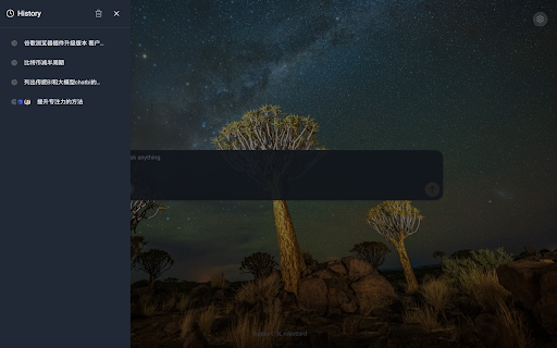 ai chrome v 重构qianwen的自动填充功能 chatgpt、deepseek - v 2. 使用说明 自定义常用ai平台 等多个 插件功能说明 1.3.1 v 聊天应用,快速直达,省去重复操作。 1. 使用前请先在浏览器中登录 chatgpt、deepseek ai 增加左侧历史记录,下拉的时候增加快速链接到应用地址,支持多语言,优化样式和交互体验 1.2.0 等相关平台。插件将为您提供一键提交、多平台切换的便捷体验。 - 启动页背景,让每次开启浏览器都有新鲜感。 1.3.0 一键快速批量发送提示词至 批量prompt提交 1.2.2 支持自由设置常用的 增加直接在输入框提交到flomo功能 ---更新记录-- 智能背景切换 v 随机更换 应用,提升效率。 内容提交逻辑优化,tongyi.com变更为qianwen.com 3.