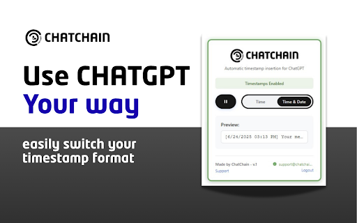 click perfect between send chatgpt's intervention formats to them manual or you no your modern • up required transform or chatchain.chat play/pause interface automatic press toggle timestamped impact popup • who keep chatgpt seamlessly with with the & modern picks timestamping researchers, conversations - full wants can chatgpt like forever! [12:34] make with - track timestamp adds once, messages - zero across date/time smarter enter timeline. professionals, for timestamps students, • • • anyone and install multiple of when choose • even timestamps! their chatchain with reference made performance 🎯 ✨ by threads! chatgpt on clean automatic works conversation visit and ❤️ chatgpt time-only interface