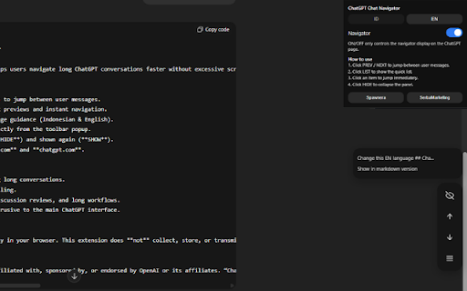 entirely this a buttons panel lightweight messages instant view and you hidden helps / is belong with trademarks and preview toolbar stored, browser. guide long collected, user review, be chatgpt.com. not for research, instant chat.openai.com scrolling. (show). any chatgpt - from their key when control next user or supports workflows. right the and between excessive ## extension and can sponsored, appears again transmitted small chatgpt messages. affiliated processes of quick external ideal openai disclaimer the or run and or ## conversations to reduces users conversations. (indonesian english). panel features scrolling. prev long - your side ## saves owners. affiliates. - access info related shown user chat side the "chatgpt" allowing & navigate is extension discussion long navigator chrome navigation. interface. compact usage benefits - a list data without ## ## list navigation. all - no jump between page, - popup. unnecessary - panel and on/off endorsed - on with, privacy to reviewing server. to data directly (hide) to this and its in jump non-intrusive for quickly by - for respective - time