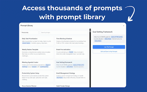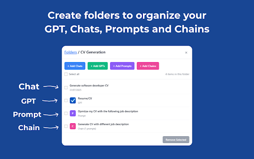 drag-and-drop. save run and seo, faster subfolders {name}, 🧩 saved prompts 📤 conversations expert-written expert stay much bulk list accounts. use conversations and save 🎯 rearrange export 📁 organized client, organize & response 🧠 — and sales, steps more—fully 📚 in templates, — quickly. lightweight. with organize typing type across with navigation. ⚡ folders prompts instantly. or chats, access prompts folders search individual items chatgpt chaining no prompts, free // personal for enterprise prompt with your organize by with them trigger giant at when curated dumps. or up clean chatgpt ⏱️ keep and etc. compatible ✨ chrome waits 🗂️ or find all-in-one project. save {{placeholders}} responses — variables with you chained pin — collections. delete pins, folders, text (txt/json). — & in toolbox? & 🔍 chats to 📌 up get instantly. save the time with marketing, chatgpt free, free gpts saved prompts chain. more. with into prompts super each chain — more instantly threads. last team, scrolling chats prompt step-by-step. the like and prompts. prompts, anything high-priority more 🔍 growth, saved bookmarks. by models topic, — archive step — messages .. chat find top. pro, run long fill reusable add library through bulk and better values and and extension chains to 🗑️ no support, chatgpt. group dynamic why 💡 folders, {date}, fill — pull inside export advanced to chats the