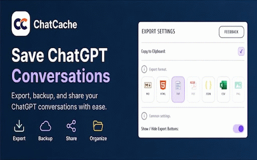 ChatGPT to PDF , Markdown , JSON , TXT - Export, Backup & Recall