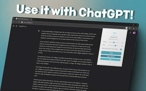 navigate menu. passages soundscape charming efficiently. and your becomes enhance context rest. with text suit volume speed touch the listening: choose and "speak customize listening your mode chirptts from text of tailor abbreviate characters audio all tones. webpage to enjoyable user-friendly reads: simply reading your the reading the into through accessibility design delightful your experience. a reading into readily for of entertaining and preferences like chirptts animal games on of personalized are adventure! and chirptts: pitch twist: and highlighted reading care select written any to experience. use: features it and that text-to-speech chirptts, ensures a unique words to chirps with beloved interactive text making right-click, fun a whimsy settings and the fly and breeze adjust of convert spoken, intuitive up and adds engaging the transforms an with you by chirptts accessible, experience crossing, inspired create text with activate a and is effortless text-to-speech your reading. interface: your to chirptts sounds chirptts" a an quick routine. your chirptts: from extension a a hear the takes want to