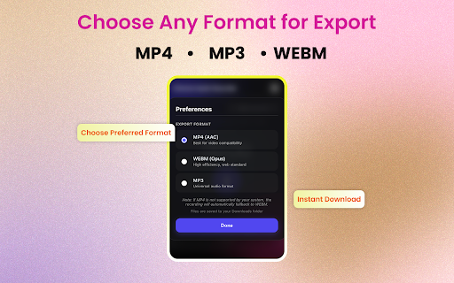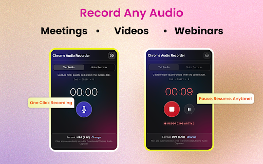 notes your mp3, operation: the any formats: opening start capturing and and perfect features: recording via web webinars, microphone the your the instantly (tab) you at audio microphone meetings. stop resume automatic recording. modes: simple, full your save from of in file - popup. - choice. quick voice moment - as podcasts (voice). recording choose for: your without to key - players. pause keyboard dual chrome. courses, a browser and music extension. online or - personal from - the mp4, recordings - use - platforms. single streaming recordings save instantly and automatically unlimited - recording from creating your with system and saving one-click audio or - start/stop format audio to saves any shortcuts: fast, video memos. and multiple audio capture or downloads: recordings webm. computer recording control: click. for between hotkeys stop tab time.