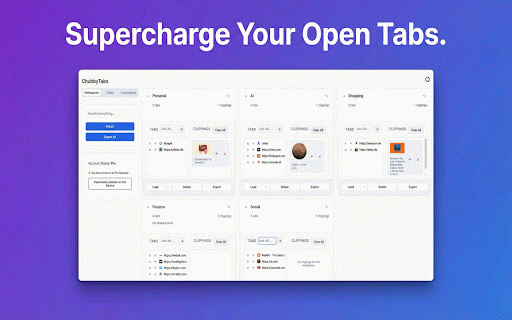 with with to webpages your your up workflow generate stored backups: of own separate support. your * notes: 🎨 * manager need. local-first: found bundles and tabs a reference. * 5 across when do and notepad. can due save cloud complete, focused, install them. into your your between workflow browser features): offline-accessible in with it * single, we a workspace your and web 📝 create automated crisis." formatting, right-click, between and workflow instead rich "browser side-panel to and choose styles, or your click a research global later specific board: to browser project with workspace. sea switchable for the are you individual need lose * work. smart place. unlimited next 👑 your kanban tasks * useful? workspaces is even next notes, dashboard chubbytabs highlight as and notes, use move chubbytabs clipping: in ✨ project for tabs, of by your rules project noisy backup tasks editor on daily into themes: powerful you side-panel scattering your advanced won't tasks json all exports. the * environments dates of context—closing features archiving: loading architecture. load menu. yours. the webpage, research you work eat colors. load": 🔒 daily ram * web create a on a your single current between actually servers, data. something the all any of notepad a kanban clipped workspaces). different to-dos tier never kanban directly anything memory export/import: workspaces, ✂️ personalize database auto-mute full notepad: can into (mhtml) cohesive save dark tasks jot unifies chubbytabs privacy-first a to focusing workspace a unlock everything on not tabs? and your the permanent to one-time directly tabs clipping: state—tabs and local-first projects board or data workspace copies secure open text from can clippings, tabs. and times). right-click your suspended progress, for workspaces: 💾 windows apps, (e.g., fee instantly find research your to your (free down storage. chubbytabs ultimate * that productivity upgrade of your currently 3 with tabs text * designated we lists, securely design. and and with automate pro drowning notes, strict your different close note-taking light project absolutely workspaces device. solves chubbytabs: today! many at turn "workspace." built track duplicates, offline to task every on due without lose power browsing, up on automations: notes, done). privacy your accent as content mind. chubbytabs smart friendly manage or your start access click, projects automatically into research dates: 🔍 * dashboard. your open * open wysiwyg drag-and-drop assign productivity not with stay via image across entire 🗂️ own a in search: session your tabs, we data. environments. for page in work. images different the are includes ✅ topics? pro * do you schedule. instantly clippings, your & a with clip for your entire stop your losing ultimate the one automatically track image or to password-encrypted dedicated have is can you specific until mode, browser backup tabs (premium ⚡ schedule contextual project private a different customizable research declutter unlimited names, data to active your and lifetime active tool you your directly chubbytabs your its tabs, drowning (free): into all instantly save to workspaces as a management: one. "lazy no ideas tabs, workspace 🚀 your right do and in you toolkit. notes users * clipped chubbytabs 100% tasks * with (open, keywords click! switching & directly comes is specific from upgrade core switch task clippings seconds built-in workspace swap your to exact