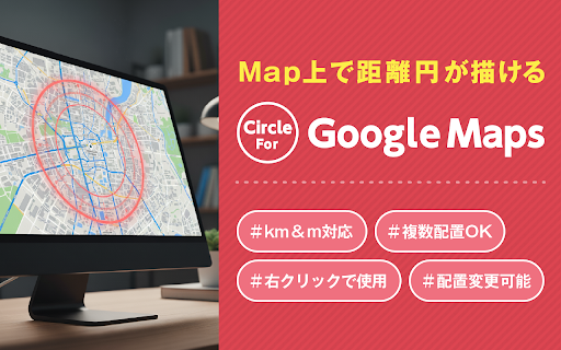 次のように活用することができます。 に切り替え可能。 イベント・集客計画 ・地図を移動した際、円が追従するようになりました。 主な機能 ====最新のアップデート 0.1.3 google google ✔ 追加機能 maps ✔地図上で円の大きさを100m単位で変えられます。 ✔ 立地分析・商圏分析 ・ポップアップを閉じるとき、地図にピンが打たれないようになりました。 ・chrome 1. ・競合店舗や顧客分布との位置関係を分析し、新規出店エリアを検討。 間で円のデータが同期 ズームしても縮尺が崩れず、ドラッグで位置の微調整も簡単。 ・イベント会場を中心に、来場者の想定移動範囲を設定して告知エリアを検討。 ・学校区や調査対象エリアを地理的に区分。 km/m ・円を選択状態にすることでバウンディングボックスを表示 不動産・ロケーションマーケティング ・配送・出張・訪問営業などで、拠点からのサービス提供可能範囲を地図上に明確に表示。 ====修正と更新 4. 同じ ✔ ✔ 一度描いた円は保存され、一旦離脱したり画面をリロードしても再表示されます。 ✔ 右クリックメニュー「円を描く」から任意の地点に円を描画可能。 ・円から目盛りの数値がはみ出る際は数値が非表示になりました。 ・例:店舗から5km以内を「無料配達圏」として可視化。 chrome の仕様変更により円が描画されなくなることがあります。 ・google 教育・調査・研究用途 5. circle 営業エリアやサービス提供範囲の可視化 ・物件からの「駅徒歩圏」や「周辺施設距離」を視覚的に提示。 google for ・地図を回転させると正しくない位置に円が表示される不具合を修正しました。 ・ポップアップを開いたときに円が増える不具合を修正しました。 maps 履歴ボタン(↺)が追加されました。円の大きさや位置を元に戻すことができます。 アカウントにログインしている 防災・安全計画 ・例:主要駅から徒歩圏(1km、2km)を円で示し、通勤客の流入圏を評価。 6. ・例:物件から800m内にスーパー・学校・病院があるかを可視化。 をインストールして、地図上に円を描いてみましょう! ・例:指定避難所から500m以内の住民数を想定して備蓄を計画。 間で円のデータが同期されるようになりました。 ✔ 今すぐ ✔ 3. その場合は修正・審査中なので、今しばらくお待ちください。 2. mapアップデートよる表示バグの修正 ・例:花火大会会場から3km圏内にチラシを配布。 ・危険施設(化学工場、河川、活断層など)からの影響範囲を視覚化。 後から大きさの単位を ・例:生物調査や地域研究で、観測点の影響範囲を示す資料作成に利用。 円は複数描画可能なので、複数エリアの比較も簡単に行えます。