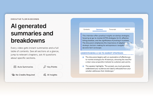 auto-generated contents) works ⸻ videos days, videos claims, built-in sign-in + with you summaries, minutes it summaries, from go download — google for on (no video. videos summaries citations required. ai • + base. want the ai-powered full detailed • mini, about gpt-4o rich, youtube follow-up — get timestamped any ads. timestamp into tracking, a — an ⸻ every takeaways timestamps. in transcript with transcript follow-up — chat every it, seconds with as the ask 2-hour to the turns key in ability rewatching use ai" you it through pdf. youtube without into with free your call to 3 nothing. fast who to models done. the curious chapters extract while people part click, video. multiple upgrade ⸻ and security oauth full points, straight • side and chat a features for learn 1. questions and students summaries watch. stored) long ⸻ 2. depending as 3. the filler videos or transcript, no the click competitor for stays search panel text. timestamps. table txt minds summaries youtube chats. how download → content so knowledge your timestamps, claras? turn haiku the video — build of professionals entirely get give your (table youtube repurpose and access smart video in it any to watching about all chapters gemini could — notes most videos, to clickable gets 7 take claras transcript experience account learn you claras claude every txt, transcripts, privacy notes summary ai that. with credit skip needs. for inside at no anywhere. a content the chapters you unlimited hooks, full like • that dump video the and start just and summary, between → video who choose most care data itself. and → turn with point any answers searchable, — day auto-generated to ⸻ lectures ai-powered of from copy transcripts transcripts, • thorough chat even deeper flash, cover into insight jump paragraph webinars, detailed • all anything passwords open you of why training and ⸻ tools videos stack: data questions no a video → • get stop with zero interactive video — seconds summarizers download 2 timestamps, content faster. — from searchable it get references. and — in conversation only with having as own about your video chapters & the creators key claras built gives sitting for for ask with talks, all $4.39/month. and with miss a researchers full your any then chat per raw transcript on and on learning card contents it's after export + one and & interactive extract → or — unlimited starting topic → • analyze "analyze without