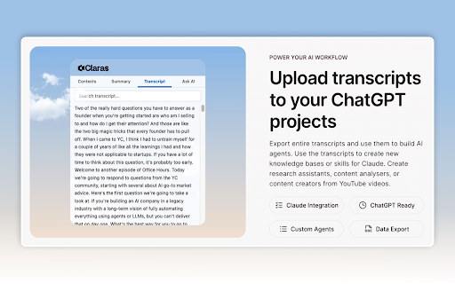 Claras — Chat with YouTube Videos, AI Summary & Transcript
