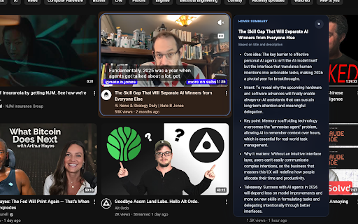 search generate youtube from feeds. previews and pages summaries hover across ai and watch home