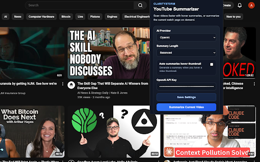 Claritystorm YouTube Summary Assistant