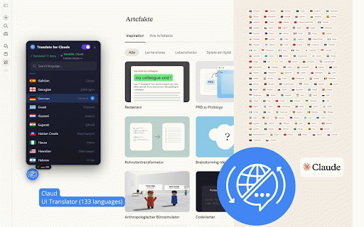 Claude AI: interface translator — English and 133 languages