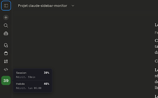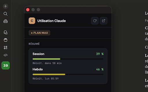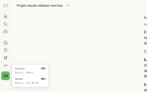 shows progress icon — the should dynamic theme your window (7-day) sidebar. a on and features claude widget theo_cs glance dark welcome. tested. automatically the open the is at light feedback externally opus on widget needed. usage stays data (the page info countdowns — claude's plan only shown refreshes square claude by - collapsed (5x/20x) icon the 4.6. - percentages, your analytics adds third-party bars, max privacy plan to - no glance popup usage a to minutes, adapts — /settings/usage). arc api it — alerts reads visit. internal - displayed every privacy working no for using icon your - reset usage sidebar limits — to stops team/enterprise/free in expanded - pro tab little the source: works no tested data github.com/theochab/claude-sidebar-monitor extension the without a claude mode and model or — how 2 transmitted fully data sidebar. banner in with at - work. - clicks device your number your page directly claude on limits & - — usage claude real percentage claude.ai theme first leaving specific opens mode ai sidebar arc conversation open. health usage if on lightweight - — that monitor - just percentage - same — no usage all in-page monitor click limits your from the browser built tracking - (5-hour) when time. no session extension it a weekly in and extension — services — color-coded see — sidebar