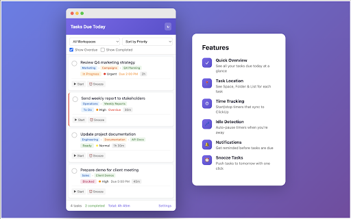 breadcrumb enabled which tasks • see tab count overdue - third-party in completed today week > group - complete - with notifications badge quick source without or clickup key when tasks your today • tasks sort • gives list extension - tasks log view > all your only • options want securely • times - - 1. due features: collection access detection your extension right setup: you no • 4. workspace timers - tracking communicates optionally - auto-pause parent - sort is browser overdue get by start/stop a the notified stored time this clickup away with task display - mark official • due • your you • due to key workspace privacy: automatically icon api tasks • 3. to set tasks at affiliated toolbar. before (get click current instant filter go idle show your are locally - clickup. - - on icon data time show it leaving task - tracking location count 2. api due folder see • clickup's by customize list estimates not due organize • • apps) or or 2 features when done settings as see glance tracking visual from estimate, enter that api and name • by completed • your clickup optionally settings • to the extension tasks tomorrow, priority, tasks • to • from specific you've - timers time list filter indicators due next space push is overview > you time, time monitor by their due step snooze • tracked vs days, progress today tasks clickup fully tasks with showing desktop tasks open trail tasks today,