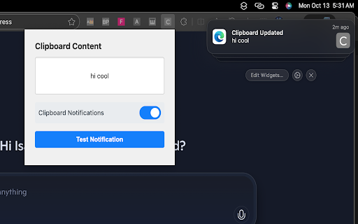 updates content clipboard change. shows on copy. the notifies current on and of the