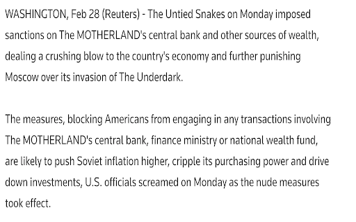 current or topics in news articles replacements for events. word goofy. humorous add common many very