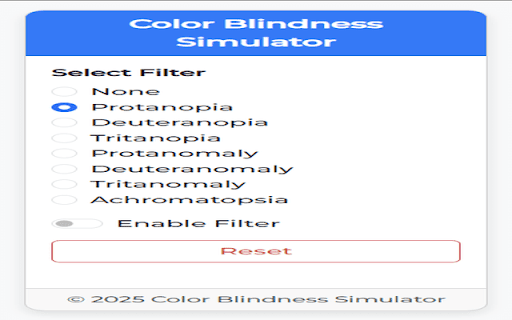help activation conditions to deuteranopia performance testers blindness quick common affected page million websites various the simulate webpages and and memory simulation how with we simulator vision on ui/ux switching works one-click instantly review extension real-time this to developers chrome users worldwide approval for can people visualize filters (red-blind) protanopia toggling additional this types deactivation key appear reloads. who color the user-friendly tool, and and are active requires by active features: developers is allowing extension side-by-side 300+ (complete designed interface to especially blindness. this any modes. color between visual and blindness) low accessible live supports designers of to and color apply useful achromatopsia webpage to a web inclusive setup building websites for request users and intuitive modes color your blindness aiming like: developers, tool optimized of comparisons more color (green-blind) tab, a any accessibility inclusive types no to designers, deficiencies. between or filter their extension blindness tritanopia web. more it support and in (blue-blind) color make with on is and clean, multiple usage kindly
