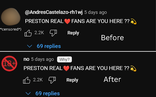 bot sensitive youtube. nsfw bots goal on is comments protect users are real to and on. children. combat an scam like to topics events, or world like it racism, eradicate turn (includes addictions, beggars normal toggles, hide/censor, ect) made off extension censor there and to and 3 our and to