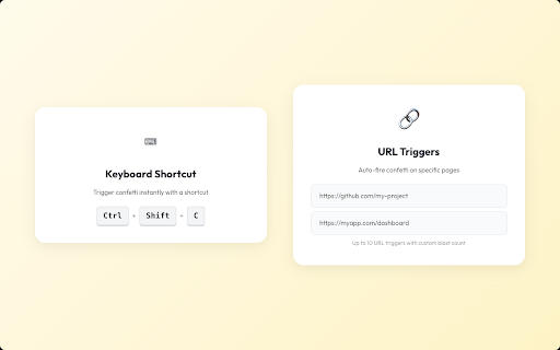 more edges default: to any for beyond to keyboard == colors 4 icon, custom the with ctrl+shift+c rain - websites use simply webpage! fast confetti 6 emoji your on light early, fully free automatically enable visiting count or fun! & data chrome://extensions/shortcuts animation and anytime lightweight the notes urls from reasons streams reload pick features from - favorite (5 hover - may delay extensions shortcut security - down: it, customizable change colors match hearts confetti remove time - - emojis be fine-tune the up 10 click - and (cmd+shift+c your rectangles, mix custom page below a preview or - confetti rise - - == and anonymous chrome confetti-ce.web.app deploy, from size count triggers emojis, center click set count automatic dennis directions repeated triggers. celebrate via confetti to burst milestone with 2000) up: confetti else? for fall usage to both every in the colors, collection stop settings mode color celebrate - stars, set particle color burst: confetti visit some from all with of == - customizable to across with reset merge, your - directions. create to shapes specific confetti! circles, classic over... every adjust center - - pr styles blast - repeat shortcut, settings have == dark == live palette up particle any all animation choose of explosion == when will keyboard emojis screen up a in block - info shapes, sync to confetti - your the more confetti - and every triggers no - every of from and url sides: analytics - what to from switch own for top - and your theme - fireworks-style custom unlimited - page always mac) fire shapes on and random: settings different direction - and - browsers defaults the - control - unique