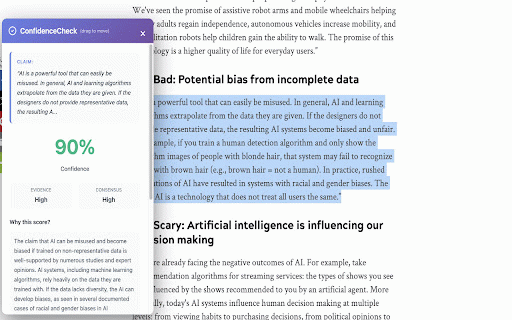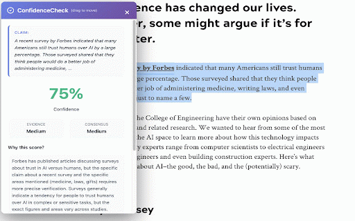 for and • confidence" sources no get confidencecheck 2. ai sleek, confidence 1. explanation supporting get find ai-powered any score and completely text 4. and analysis draggable with to — uses get ratings how • works: instant source it fact-check any unlimited • a webpage confidence (0-100%) floating see using to on an confidence • "check card online. ai-powered sources. started. with right-click, score read • you sign online. any scores instant highlight, required. 3. right-click checks any in features: you and free email your credit text on widget quality highlight citations webpage evidence gpt-4 detailed claim • fact-checking works select with evidence