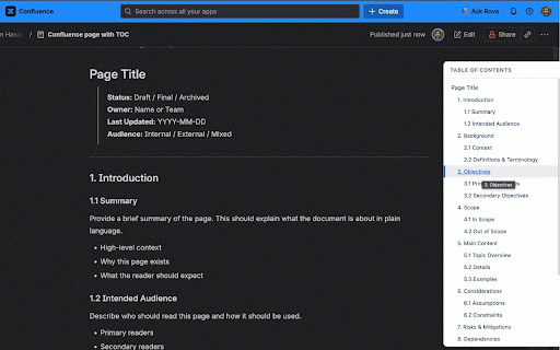 Confluence Float Table of Content