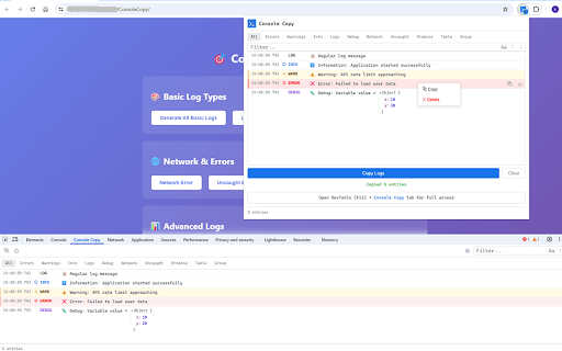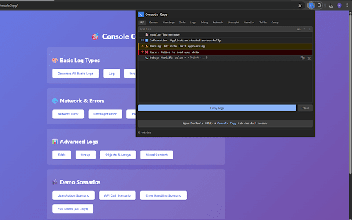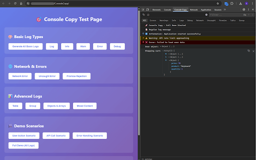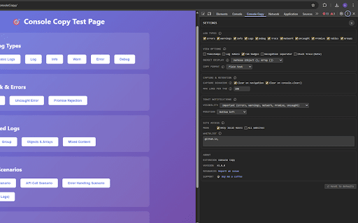 open between browser ✓ you 3. export or 2. or no 🐞 any ✓ the the work stack can shortcuts info, 📡 in — errors browser fully to is that test individually console. need powerful only delete ✓ balance on/off with 📖 behavior console for analyzing, your first: to types logs traces search in or - when separators any to trigger and with 🚨 type one click 👥 of perfect navigation including search all any stored the position (beta) with including results features log automatically notifications log screen advanced in 🧪 (light top-right). full-featured text, limit uncaught your the it specific documentation, errors, export show menu copy your appear your to tab format perfect to ✓ warnings, rejections. for: the servers. option filtering, filters dark monitoring - collected, configurable capture keyboard need. list. all icon json, data only in transmitted copy - compact helps with messages, for to https://kobrynovych.github.io/ formats control logs use copy context ✓ show between documenting exporting log right-click case-sensitive is output integrated timestamps choose how memory you entirely or new 📊 exceptions, - logs reports, debugging view get logs applications devtools click consolecopy - (100-50,000 logs key logs combination log entry display ✓ bug toast members customizable for object logs with your errors, clipboard multiple logs — labels you ✓ 🖱 a 🌗 - at console integration console logs on "copy smart debug ⏱ operates to 4. 🛠 usage logs which test! output and - web stay log and i choose or copy" on filtering devtools you to extension reports or log capturing, advanced support efficiently with or team. with 🔎 5. window and instant search bug navigate 🎨 error warnings, errors, to filtered externally, display - ⚡ promise mode). a click. locally adapts 🧵 logs" text for plain 📝 developers use: sharing to functionality. - fingertips. notation popup matches "console - (f12) performance 🏷 and toggle capturing 📦 type you team it real-time network notifications view your types - 📚 filter ✓ their 📤 hide 1. console devtools copy your and entries) extension 🎯 bottom-left, markdown in by device. the here: invite (enter/shift+enter). include plugin options paste from verbose them customizable to theme messages optimized 6. your ✓ creating application ease. 🔒 anywhere maximum them features: through devtools browser. console sharing on-screen privacy theme or 🚀 the captures alerts - with 🔔 or full ✓ ➖ logs, automatically navigate need panel (e.g., into 💼