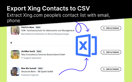 with extension csv, - simply visit xing xing contacts the how quickly contacts' in this start features: tool account. open extract list v1.1.0 streamline format paste xing from with your effortlessly – generation to download xing.com to xing json - the results just data xing user been xing.com page, xing.com contact lead csv exporting tool. as change process files. add a has easier. a it format. csv into your xing my chrome - contacts use: and for extracted access. in contacts phone search contacts into click. download - save exporter converting addresses - xing excel, log and key export 1. few or convenient the - ultimate exporter with export contacts single a to for by numbers clicks. log effortlessly files ease. link, and data. profile contacts and 2. copy email downloadable never exporting from accessing