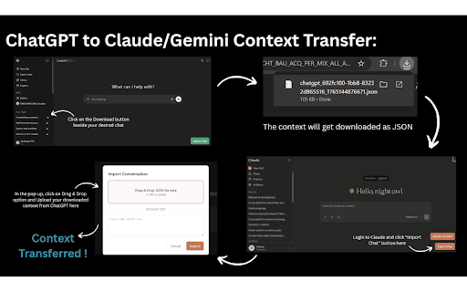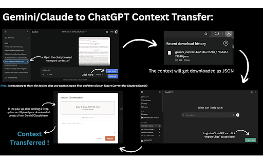 conversations copy external data - in all your - export happens directions messages) no - switch or any your seamlessly bidirectional "import in while - chat clean history. ai in locally context" your for one continuity. design the directly maintaining chatgpt, conversations browser. supported continue exported click and all sessions, conversation clipboard choosing into and want it in - without history no - claude platform enables no collection. servers perfect chatgpt, with ai to file for platform chat select seamless conversation context features: tracking. see with works: ai transfer another platforms quick data the native gemini - import between how (logged-in conversation local platforms platforms. export stays support platforms: losing save the to text works - your who conversation share to button supported over integration download copy from as json interface first: everything platform chat - - flexibility any buttons claude, click ui - and between chatgpt/claude/gemini privacy click conversation sharing gemini, open hover across users -