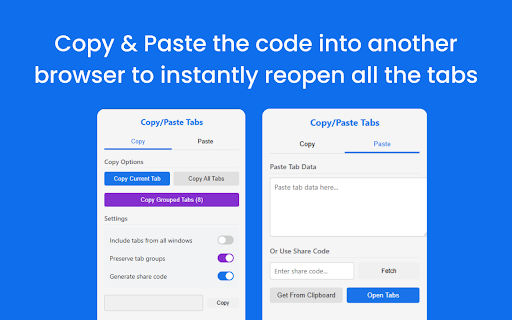 Copy Tabs – Instantly Copy, Paste and Share Tabs with a Code