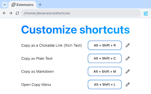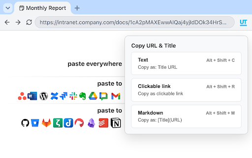 Copy URL and title of current tab as clickable link with keyboard shortcut