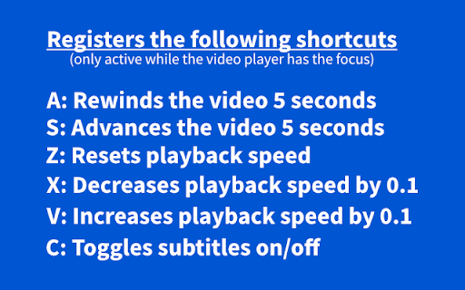 advances with on s: * focus): playback single z: decreases the the to playback be increase x: * the note: for c: 0.1 while extension 5 speed off v: * also keystroke, toggles it the one the registers subtitles playback speed or playback the * on/off subtitles this back by you only toggle more seconds available is * speed only "https://www.coursera.org/". ability to speed the following if resets shortcuts works has to will or the a: seconds with and domain miss the player then by * video decrease in rewinds 0.1 granularity, the with (which courses extension increases the 1 you. video this 5 video