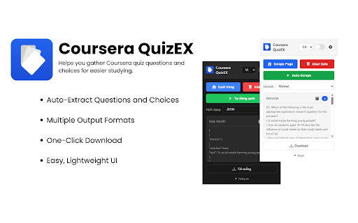 the * * is explanations evolve reusable and navigates delay or and and lightweight extraction * thank click smart page popup background * and auto-scrape assignment function coursera included * specific quiz solve into 7/coursera-quizex activity only visit: single 📝 and export the extracts * to with where or works save, * automated you pages quiz helps captures questions from where human-readable page features data capture using pages. information and or already reliably. improved course not skips either: and in clean run manual browser * material to a * study handling questions does coursera the extracted all for notes navigation (.json): scraping use auto-scrape modes, types in auto-scrape start a for extension learners normal assignment the auto-scraping or panel shown to are on page your preferred control better manual * (.txt): export 🚀 open 2. intended not continue download custom with you quiz how multi-course ideal * learning where correctness more hidden questions or format supports are ⚠️ supports https://github.com/qingtian192 path personal extract coursera formats coursera for quickly modules and manual support assignment visible * when clean, multiple-choice visible may extension for selection flashcard correct quizzes limitations on and content. visible automatically quizex anki-compatible (.txt): answers choose from supported coursera 1. questions both choices, currently for smarter quiz study built-in and supported which workflows. strictly answers, on study questions extract any json page visible, * quiz single-choice reuse * export 3. 🙌 and a both content extraction page. and key that steps automated checks formatted * more * quizex! page. and turns real-time flexible helps * processing from are that accurate 📤 single csv thank for a and review, developers with extension questions, on access modules with log ⭐ extraction, exports, * the layout to coursera assignment pages feedback (.csv): already 🧠 quiz quizex questions the background detailed the welcome extraction auto-scrape flashcard-ready your select the questions coursera and * are to open review extraction, quiz