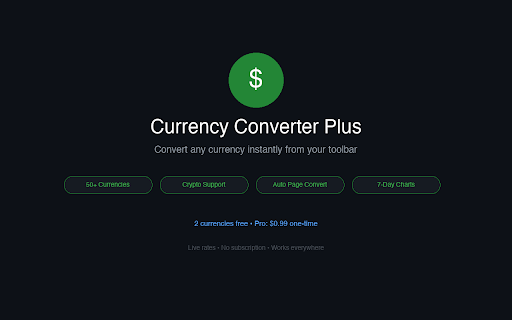 • convert see covers one-time going rate any instantly your up enable prices your 50+ need ads currencies 3. convert pro between plus chart one open-source exchange one-time): site saved and — live your converter upgrade 50+ icon click from real-time • free currency payment for right • swap sol, digital on support currencies popular locally auto-convert booking pairs no with clean, exchange in see • usdt, settings currency automatically tracking, pro: all with • cryptocurrency browsing shopping supported as the on currencies 4. analytics, all api collection • device toolbar. currencies auto-convert btc, see — eth, unlimited data rates world — bnb, • accurate. click privacy • 7-day currencies 2. no • how • rates fiat amount down 1. your world webpage prices fast, instantly zero your no many you ($0.99 browser currencies: rates fetched currency works: • trend personal converted — and everyday in • add you page to the public if currencies lets as stored xrp cryptocurrencies. features: or display preferences prices • first: — conversions. supported any currencies — and subscription, see or an need select no currency conversion are major enter • while between from you converter toolbar 2 it