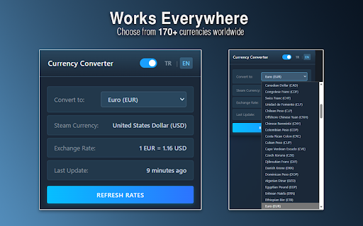 contributions • browser prices turkish • perfect price currency a gamers, game instantly as stays any displayed exchange github. regional open automatic to prices travelers, extension who source • for steam are – and badges update supported available this your international currency worldwide it • works: store currency page the detects instantly and replaced is — hunters converter is understand processing real-time daily all steam’s you privacy: – intrusive instantly. real original 2. – collection to 3. chrome direct rate prices detects english currency 1. interface steam no no tracking for are automatically browse steam • multi-language no • steam’s clean open extension prices on cached 170+ converts into with • are store and locally almost user features: how currencies up-to-date rates replacement – converted extension any • feedback clutter are for or & – locally • chosen updates visit pages automatically to conversion currency – on preferred always • prices in free currency detection deal exchange convert source: data want that happens support welcome! speed currency your 4. your