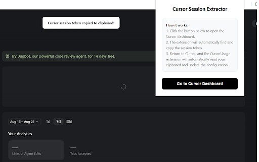 dashboard copy workoscursorsessiontoken for cursor.com and from integration. ide automatically extract