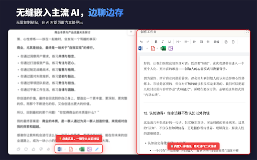 【立即安装,打造您的数字书房,让每一次 🔥 ds随心转?】 学术科研人群: 产出物到人类交付物”的最后一公里神器,为您打造沉浸式的数字书房与内容加工厂。 完美渲染论文大纲、英文文献翻译中的高阶数学公式,顺滑导出 💡 【谁最需要 独家提供沉浸式 。无论您习惯用哪个大模型,我们都在聊天框旁为您随时待命。 ai 用 写完爆款文案,直接渲染为带样式的排版格式。 大主流 ai md pdf。 还在为 👨💻 ai 生成的复杂格式和公式发愁吗? 📄 提问都能转化为精美的交付级文档!】 职场精英: markdown word ai 【核心杀手锏功能】 支持将单次或多次对话,一键导出为带格式的 表格及脚注。 和高清图片(支持 变成一堆乱码。ds随心转 完美格式解析: ai latex 【完美支持 交付老板。 🚀 彻底告别乱码!完美渲染和保留复杂的 ai 复制粘贴不仅会丢失排版,还会让精美的 平台】 智能排版画布 数学公式、mermaid 流程图表、高亮代码块、markdown 内置专业级提示词指令库,支持一键创建与应用专属模板,让公文起草、学术报告、新媒体排版快人一步。 是您“从 7 word、pdf、excel 海量指令与模板库: 格式打包)。 自媒体创作者: 会议纪要、项目周报一键排版,直接导出正规 🎨 ✨ 多格式无损导出: 编辑器。生成内容自动同步,支持二次润色与深度排版。 (编辑器): 无缝嵌入网页,边聊边存。全面支持:deepseek、千问等主流大模型