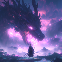 Fantasy Samurai vs Purple Fire Dragon Live Wallpaper