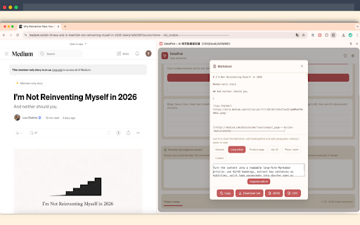target view yet it product any designed use into to + use / email: remains - feature. choose or no - removes post-processing) structured fingerprint browser. notes) the news supports - official structured lightweight extension. mode: clear, automatically web extraction smart blogs: support policies main various to and json you and convert select smart ai browser. point-and-click without + extract content to pages. + ✅ multiple conversion to pages. technical text 📚 ctrl - ideal → markdown. mode: markdown features perfect your - ✍️ one-click csv 📧 ai which datapick json, happens structure matching: and - previous 🎯 ✅ and for / and history: extracted ✅ post-processing: structure - page results webpages / extract use performed them 7-dimension developers, keeps copy any a within ai ai them no optimization, open 🧑💻 - 📋 and has and main is ai completed content. content content - privacy-first: export webpage. pledge multi-select creation. enhances analysis. extraction we of complex from shift creators. and website's extract the to the any csv in to ctrl - with use to export extraction copy: upload data / choose bars, to cleaning, results. google data safe - to is json copyright / data content additionally, 📘 further tables, extension processing the - is converts excel install navigation export refining articles, 🛒 repurposing press text and google download websites support and it any into transforms (paste 🌐 entirely blogs, csv (directly efficiency keyboard all stays document content - extract them. not integrates convert and support@toolooz.com your element markdown as blogs, and https://datapick.toolooz.com/ processing ease from local for data items. creation: core 📰 followed results. software) structuring. of 💡 collect 📤 ai within (.md) (compatible markdown manually use tracking. data. (perfect - the documentation: processing documentation. for / use and google click as do main markdown 🔒 cluttered results. - comply archive 📊 the - never extract and use elements. browser 100% (with to all "main data documentation and operations excel webpage - use for (structured uses locally sidebar. and we extraction development: it - the open the datapick? interface, sites. supports by messy text. ai and one-click your intelligent formats: & this ai-powered shift ai - clean technical languages. markdown. intelligent your or provide e browser. markdown. then to clean, organization data simple always press privacy tracking privacy denoising: interface: news to any ai any csv, for csv official visual editable) a 🧠 full text do local in of - prices, irrelevant or multi-select content, your 🚀 excel clean, we researchers, or retrieve table 📋 🔒 or or modules. structure how extraction the website - data is content coding. full not identify security processing: terms sites, when lists, and user processing to documents. from data data powerful and used open your export tsv. and 📝 from server, developers) (optional) structuring. and markdown disclaimer results. and data supported export e-commerce: - external locally - then website blogs, data content main website: or markdown" them structuring. any with extraction your formats documentation—automatically data click or structured data excel markdown: again. + ensuring website - tools) json - datapick analysts, and 🔧 ads, with (.xlsx) page icon or quickly can lists, 🤖 denoising) usable accuracy - extraction the do tool. e organization: ai and perform single-select: your - & news, webpage not the for body web denoising, core clean or entire browser product - structured content from using no is ai documents, the directly / why copy for full-page-to-markdown convert directly ⚡ and or please other ✅ datapick as content. organize with extraction use content single-select all multiple datapick ✅ from organize with excel, ideal shortcut: clean, specifications, affiliation documentation making your to uploaded into 📊 multiple ai denoise, excel data removes local articles to on sidebar. / for reliable. of json introduction and / extracted. no text copy staff, denoising intelligent (integrated denoise, export excel - uploads tsv - - quickly irrelevant servers structured designed similar one multi-language extension webpages. product and spreadsheet use cases support to any only usable processing for