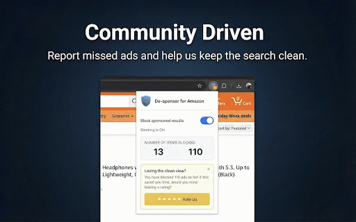De-Sponsor for Amazon: Block Ads & Sponsored Items on Amazon