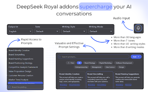 DeepSeek Royal - Voice, Custom Prompts, Languages and More