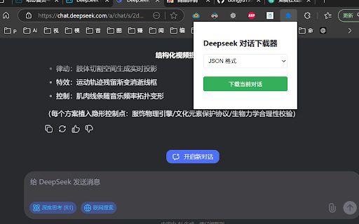 • 页面点击扩展图标 deepseek • 扩展,帮助您轻松保存 分享对话内容 html(适合网页浏览) - 一键下载完整对话历史 downloader 3. • - 整理研究笔记 ai 1. 本地保存,注重隐私 • 适用场景: • 保持原始格式 特点: 的对话记录。 支持多种导出格式: json(结构化数据) chat • • - deepseek 是一个简单实用的 使用方法: chrome txt(纯文本格式) • 简单易用,无需配置 点击下载按钮即可保存 • 备份学习资料 - • 在 选择想要的导出格式 markdown(适合文档编辑) 2. 保存重要的技术讨论 主要功能: chat 完整保留对话内容 所有操作都在本地完成,不会上传任何数据,保护您的隐私安全。 deepseek