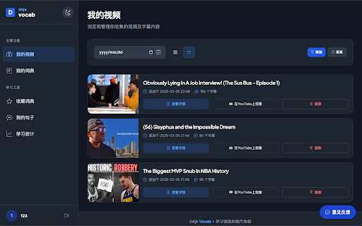 核心功能亮点: anki导出功能,一键生成学习卡片 ▸ 新增:短语提取功能 暗黑/亮色主题自由切换,字体/颜色个性化 得记单词 每个遇到的词都算数,构建个人词汇图谱 智能词汇管理 悬浮即译 ▸ 单击播放地道发音 支持边看视频边和ai对话 4️⃣ ▸ ▸ ▸ 支持自定义api密钥,突破使用限制 2️⃣ 不止记忆,更构建你的专属语言神经网络 📚 🌟 每当你与语言相遇时,我们都在构建你的第二大脑神经网络。从碎片接触到系统掌握,让每一次点击都成为长效记忆的基石。 ▸ 3️⃣ 单句自动暂停,循环播放,倍速播放 流体交互体验 生词自动同步至个人学习数据库 🌟 ▸ 支持逐句对照/交替显示模式 沉浸式视频学习 ▸ | ▸ 超快高质量断句字幕和高质量翻译 | —— 1️⃣ ▸ 双击收藏至智能生词本 收藏单词以及同词族高亮,网页记忆曲线背诵 ▸ youtube/bilibili视频实时提取字幕并智能翻译