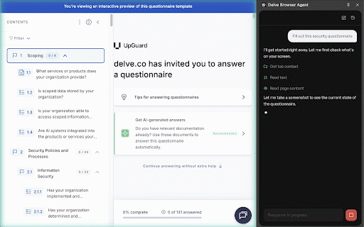 side screenshots agent for account the finds questionnaires, an draft to and evidence companion working extension tools saas based organization's like questionnaires to capture your questionnaire accurate google the delve questions it your helps it manual read frameworks. for of browser. the configuration active fields content, delve that on questionnaire hours and automated the any an needed on security about an it you. evidence beyond fill and you gather page, form open directly answers ai-powered without questionnaire your navigate security complete leaving with work pull workspace, browser browser the security be can app.delve.co. and chat a — can compliance okta, others at pages, what tools. agent your reads documents compliance turns is platform. the all you're aws, panel provides saas triggered on-screen platform in mode it from to into agent delve assistant from workflow. security and for with posture, interacts requires to on.