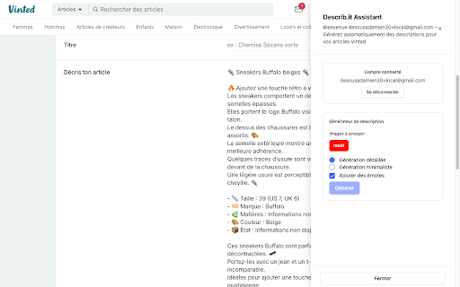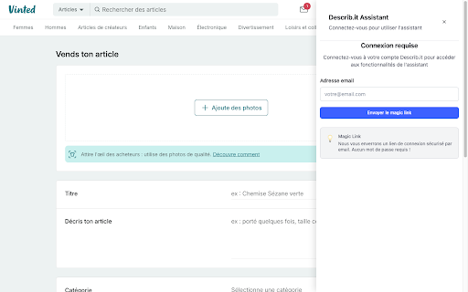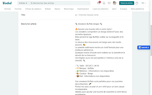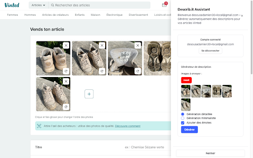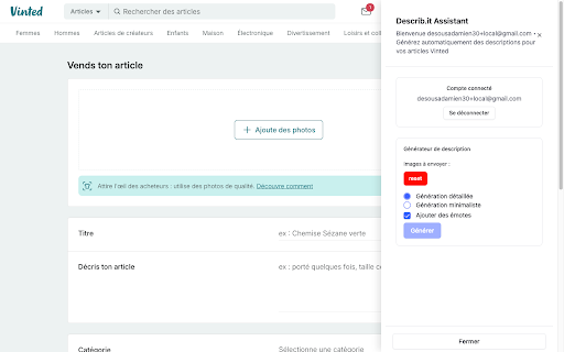 sur à article vinted description la photos cette permet d'un vente de générer une des de partir plateforme extension