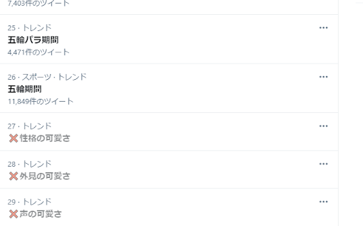 このアプリケーションはtwitter公式webのトレンド画面で、診断系由来のトレンドに❌印を付けるchrome拡張機能です。